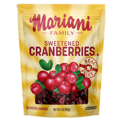 dried sweetened cranberries mariani Per 1/3 Cup Serving: gluten free; 2 g fiber; 1 serving of fruit. Mariani Premium Sweetened Dried Cranberries Description. Premium.