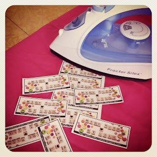 To make my stamp, I used aClover felting needlecase (this is not really the right way to mount the stamps, but im cheap, so it will do) and those fabulousMartha Stewart stamp lettersthat you pull apart and make your own words with (there probably is a name for them, but I don't pay attention to such things, clearly) you can buy some at Michael's. The cheap Ink in your inkjet printer may not be reliable to last a long time on your fabric; the print will eventually wash out, especially if you are sewing it onto a frequently washed garment. Or shoe shopping because you can never have too many shoes! Let the label cool before peeling off the back paper.