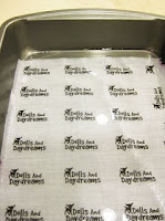 Don't forget you are going to need to cut between the labels so leave enough space for them to breath. Don't pull any loose threads with your fingers as you need nice clean edges. After you have done your printing, you will need to fix the ink with a setting bath.