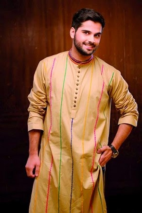 Neck and Ban styling over Mens Salwar Kameez.