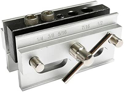 This keeps the jig straight while you tighten it. Put a few layers of tape under the file so you dont mar the wood. One solution is to use a cheater pipe, but heress a better one: Add round knobs ($4 each at a hardware store). ENSURE THE DRILL IS TURNED OFF. A screw runs through the whole block. Over the course of this article I will be going into detail on how a dowel jig works and how to use a dowel jig to create different types of joints, while also sharing a handful of tips on general dowel jig use. Ready for more? The Jig accepts 6 bit sizes and will fit boards up to 4 thick. Guide bars are graduated for fast positioning of hole center.