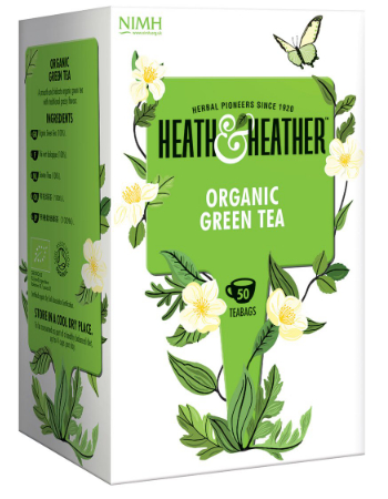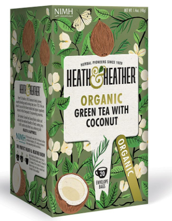 - Organic Green Tea & Coconut (Net Wt. Heath & Heather Organic Green Tea provides a light and refreshing taste, a simple and natural way to support your wellbeing.