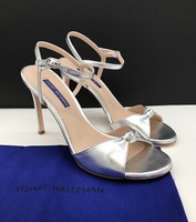 Stuart Weitzman Leather Mariposa Ankle Strap Sandal In Platino Square toe. Mint condition. 3.8" stiletto heel. Stuart Weitzman Amelina Metallic Stiletto-Heel Sandals on SALE The Stuart Weitzman Ameliese Pearl sandals feature barely-there straps that are adorned with pearls for a truly elegant look. This suede pair features a skinny heel and a squared off toe for versatile appeal. Stuart Weitzman Amelina
