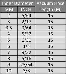 If the job configuration requires long runs of hard pipe or hose (200ft. Depends on the component that you're putting these hoses to. Vacuum liquid is a very interesting section, I did not fully understand Do these work without scratching the wood you lay it against? However, for most tools, you'll usually set the air pressure to 90 PSI. The vacuum rating of the system will determine who much vertical lift can be achieved: an 18" of Hg system can pull 18ft. By reducing the hose diameter to 6" with the same 5300 CFM system the nozzle air velocity increases to over 300 MPH- Whatever fits in the hose WILL end up in the truck. It may not display this or other websites correctly. hose vacuum diameter silicone 2mm inner foot Is there a place in the firewall to run the vacuum line or do I need to drill a hole? Why not just hit up autozone for couplers\reducers and fit the lines properly without rigging stuff? It's under the plastic cowl that covers the wiper motor, enters approximately in between the HVAC box and steering column. The following errors occurred with your submission. Any other shortcuts into the cabin from the engine bay? He doesn't say much about the sizes or difference in sizes. Larger CFM vacuum pumps allow for faster "recovery time" and can maintain greater pressure differentials over time that allow for better loading rates and allowing for larger diameter hose to be used.