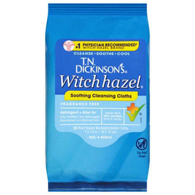 Since 1866, our exclusive blend of witch hazel plant extracts creates its signature botanical scent and make it gentle enough for even sensitive skin every day. 52651-001-07, Stop use and ask doctor if condition worsens or, Keep out of reach of children. Dickinson's Witch Hazel Cleansing Cloths - 25 ctThese cleansing cloths are great at home or on-the-go to effectively remove dirt, oil and impurities while soothing redness and irritation - Dickinson's Enhanced Witch Hazel Hydrating Toner - 16 ozThis hydrating toner moisturizes skin as it removes impurities while refining pores. cleansing dickinson removes