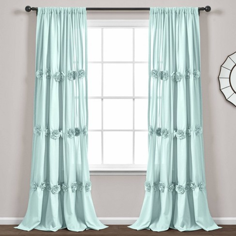 Ombre Embroidery Tassel Cotton Shower Curtain Gray Single. Give your windows a romantic, shabby chic look with these window panels featuring rows of hand crafted flower embellishments. Ruffle Shower Curtain Light Turquoise Single, 72 in. Because the floral embellishments are delicate, these panels are labeled dry clean only. Please remove the Gift Card(s) and proceed with checkout. I won't use my Military Discount at this time. For California residents, by proceeding to interact with Fingerhut, please be aware that your personal information may be collected. Prices, promotions, styles and availability may vary by store & online. Suggested Monthly Payment:
