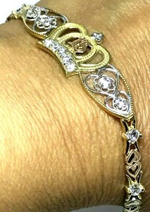 AUTHENTIC 14k Quinceanera Bracelet With Hearts Super Cute Must See! Quinceaera Rings - Don Roberto Jewelers 14k Tri Color Italian Gold 8mm Heart Quinceanera 15 Anos Ring. 14k Solid Gold 15 Aos Crown Ring, Quinceaera 15 Aos Crown Oro Real, Sweet 15 Aos Quinceanera Crown Ring, Sweet 15 Aos Crown Ring.