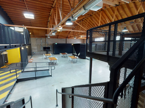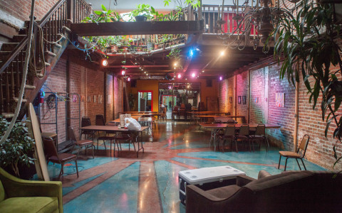 --NO late night parties onsite, operation hours finish by 8pm. The main space and lounge are co-work by day and event space in the evenings and weekends. The space is an open, brick warehouse with 25 foot ceilings. -- The number of guests (above 12) should not exceed 60. Modern neighborhood gallery with rotating art from Bay Area artists. It's a big backyard with barbecue, mini outdoor kitchen, gazebo and good lighting. peerspace