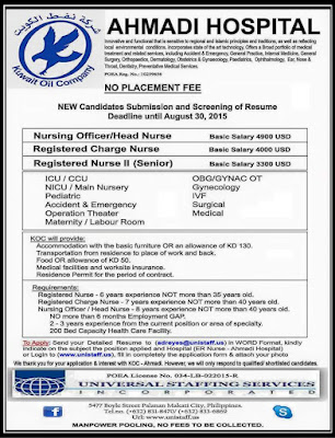 hospital nurses jobs kuwait koc vacancy job